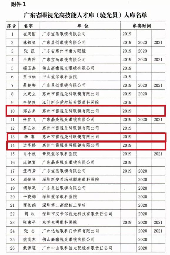 在今年由广东省人民政府举办、广东省人社厅承办的第三届广东省验光与配镜职业技能竞赛及广州市人社局举办的第二届广州市眼镜视光行业职业技能竞赛中,我校眼视光专业教师、毕业生组队代表企业参加行业竞赛,大家凭着过硬的技术,获奖成绩喜人,曾锦惠老师获得“眼镜验光组”季军、“羊城工匠杯”铜奖、“优秀选手”称号,我校2018届、2019届、2020届、2021届毕业生郑占弟、卓美璇、詹茵茵、刘道森等多人夺得广东省验光与配镜职业竞赛职业技能竞赛优秀选手称号,师生与合作企业广东雷诺科技有限公司组成的参赛团队获得“眼镜验光组团体二等奖”,“团体优秀奖”。8名眼视光专业毕业生同时入选第一批广东省视光专业高技能人才库,此为全国第一个眼视光高技能人才库。