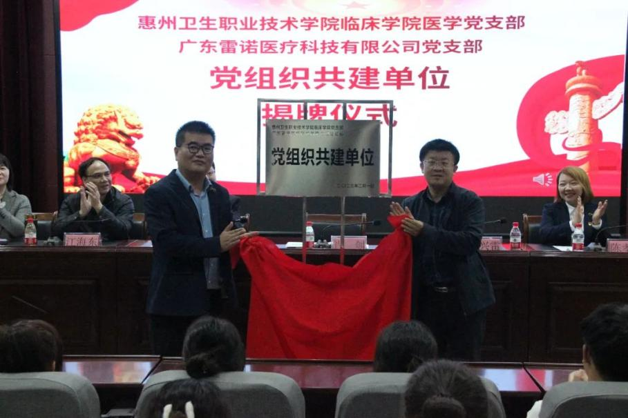 为进一步学习贯彻党的二十大精神,落实习近平新时代中国特色社会主义思想,加强校企沟通桥梁,继续推进临床学院产教融合,提高校企紧密合作人才培养模式的发展新高峰,促校企深度融合。惠州卫生职业技术学院临床学院医学党支部与广东雷诺医疗科技有限公司党支部,在多媒体功能报告厅共同开展了学习贯彻党的二十大精神主题党日活动暨惠州卫生职业技术学院临床学院医学党支部与广东雷诺医疗科技有限公司党支部党建共建启动仪式。